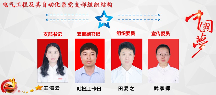 开云kaiyun登录入口电气工程及其自动化系党支部教师共24人,其中党员15人,入党积极分子4人,党员占电气工程及其自动化系总人数62.5%;教师中博士学历20人,占比83.3%;党员中博士学历11人,占比73.3%。其中4名教授,9名副教授;4名博士研究生导师,13名硕士研究生导师;设有支部书记1名,副书记1名,组织委员/纪检委员1名,宣传委员1名。