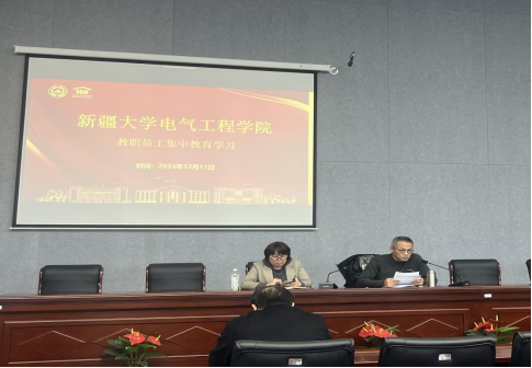 12月11日下午,在电气工程学院320会议室召开全体干部职工大会暨专题学习会议,传达学习学校会议精神,会议由学院党委副书记、纪委书记雷珩主持。
