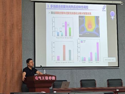 报告会上,刘茂昌教授围绕《多场耦合聚光太阳能氢能及化学品》主题,内容聚焦于多场耦合的聚光光热反应特性调控,刘茂昌教授详细介绍了通过对光、热、磁等多场协同作用机制的研究,实现对聚光光热反应过程的精准调控;提出磁耦合整体式聚光光催化分解水制氢体系,利用磁耦合技术增强光催化效率,为氢能制备提供新路径;阐述多场耦合的聚光光热制氢反应系统集成及示范,展示该技术在实际应用中的可行性与优势;同时,还分享了构建的菲涅尔透镜和复合抛物面聚光器二次聚光耦合的太阳能光热耦合分解水制氢系统,该系统通过创新的聚光结构设计,显著提升太阳能的利用效率。